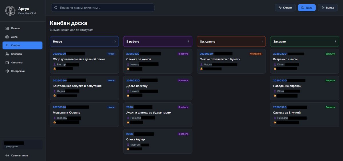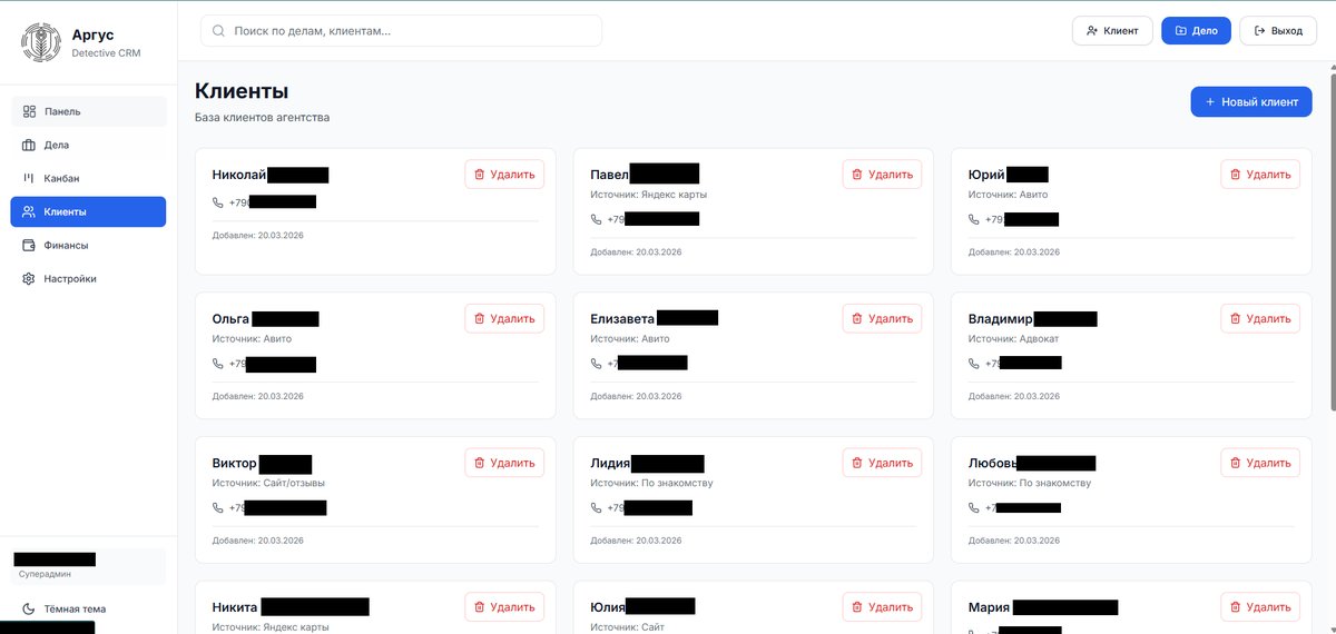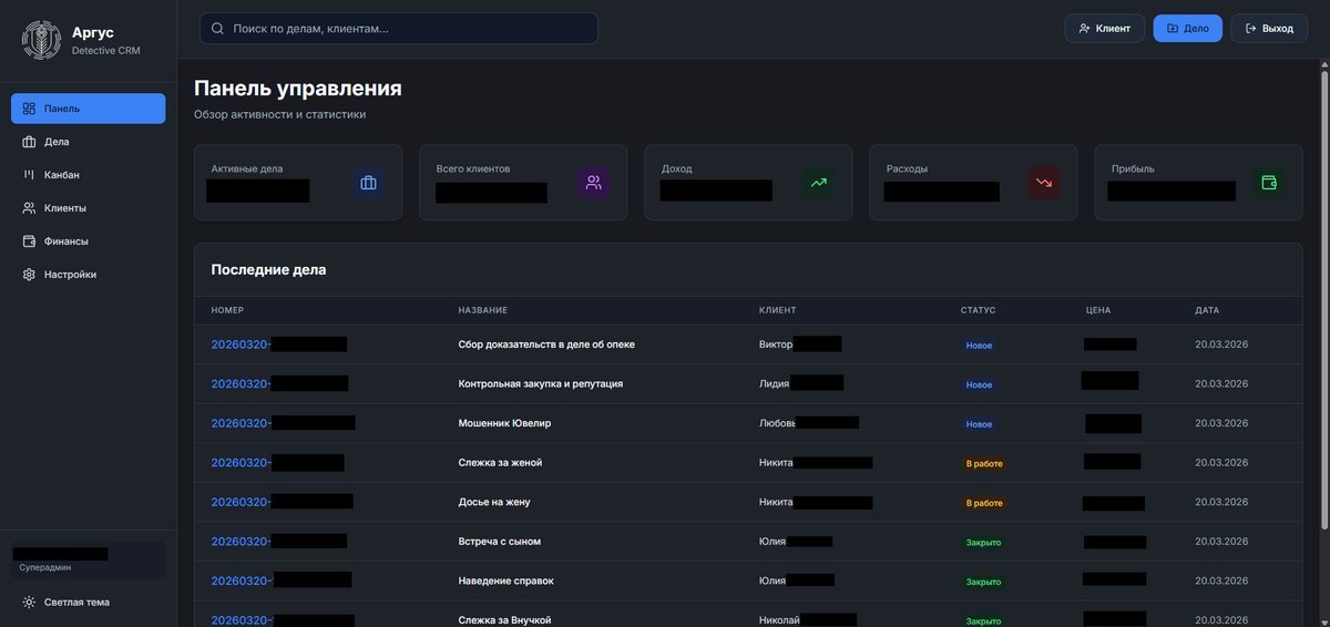 Специализированная CRM-система для управления детективным агентством. Все инструменты для ведения клиентов, дел и финансов в едином пространстве с гибкой системой прав доступа