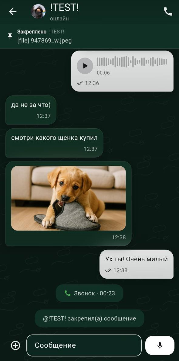 Современный мессенджер, объединяющий мгновенный обмен сообщениями, голосовые заметки и защищенные видео- и аудиозвонки на базе WebRTC с автоматическим подбором TURN-серверов для стабильной работы через любые сети